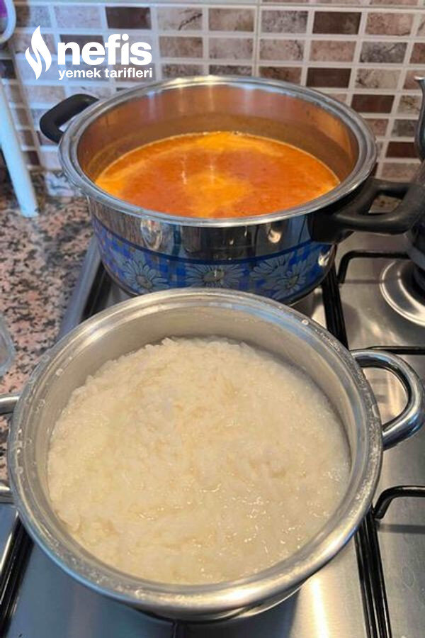 - Haşlanan pirinçler çorba karıştırılarak ek edilir.