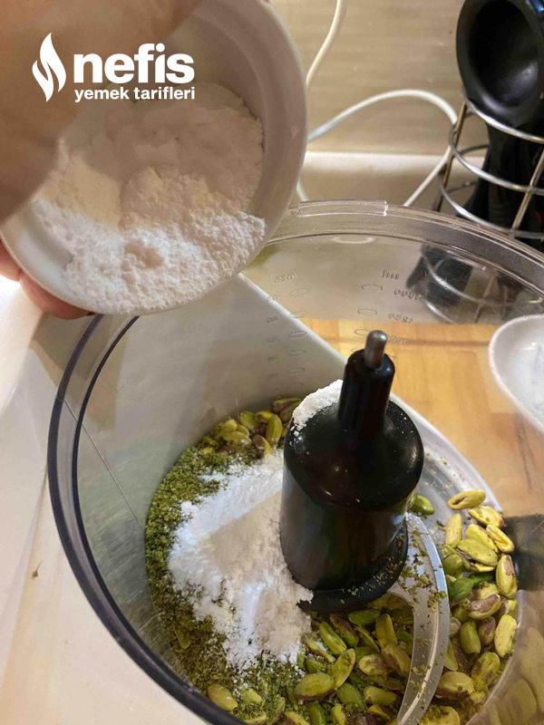 - Öncelikle antep fıstıklarını rondodan toz kıvama gelene kadar çekelim. ( ben unutmuşum siz unutmayın 😂).