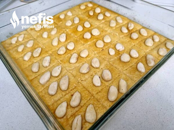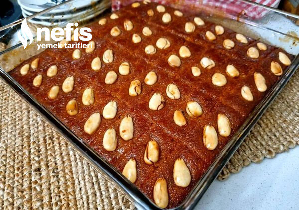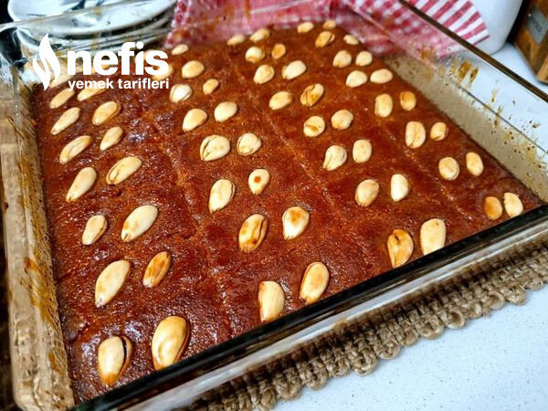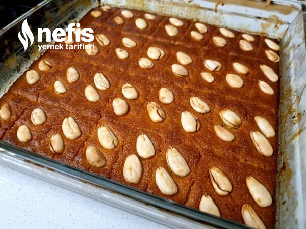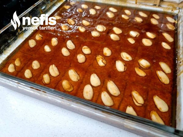 - Tatlımızı fırından alarak birinci sıcağı geçince iz bırakılan yerlerden dilimleyerek sıcak tatlıya sıcak şerbeti dökelim 3-4 saat dinlendirdikren sonra servis yapabilirsiniz. Afiyet olsun.