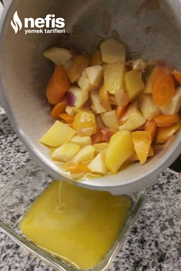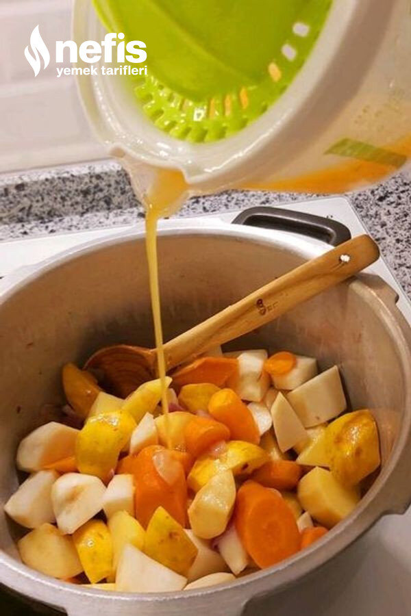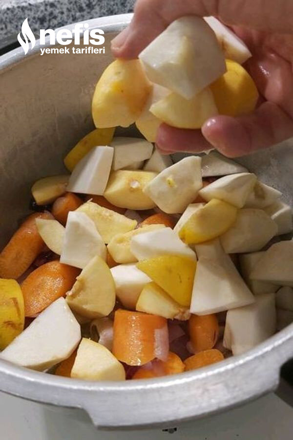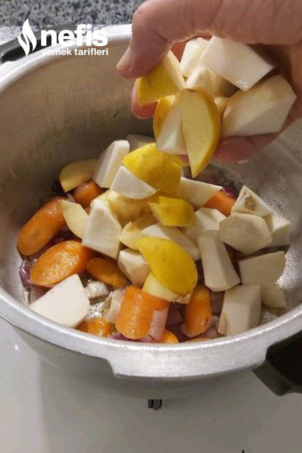 - Üzerine havucu koyup birazda onunla kavurup ,ayvayı, kerevizi ,sarımsağı ,patatesi ekleyip kısık ateşte biraz kavuruyoruz .