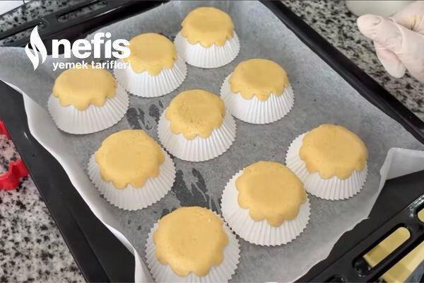 - Hamurdan bezeler kopartıp merdane yardımıyla açıyoruz ve kalıbımızla kesiyoruz kestiğimiz modülleri muffin kalıbını aykırı çevirip üzerine yayıyoruz.