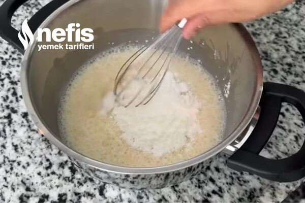 - Bu ortada limonlu muhallebimizi hazırlıyoruz.Limon suyu yumurta tozşeker mısır nişastası düzgünce çırpıp daha sonra süt ekliyoruz ve muhallebi kıvamına getiriyoruz.