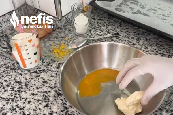 - İlk evvel hamur için gerekli materyalleri karıştırıp kulak göğsü kıvamında bir hamur elde ediyoruz.