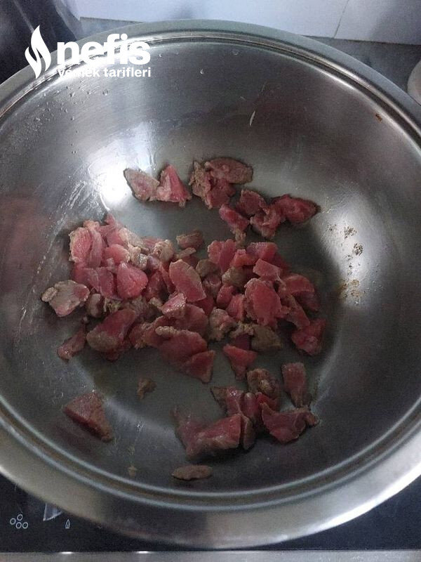- Pilavınızın üretimine geçmeden evvel etleri kuşbaşı halinde doğrayınız.