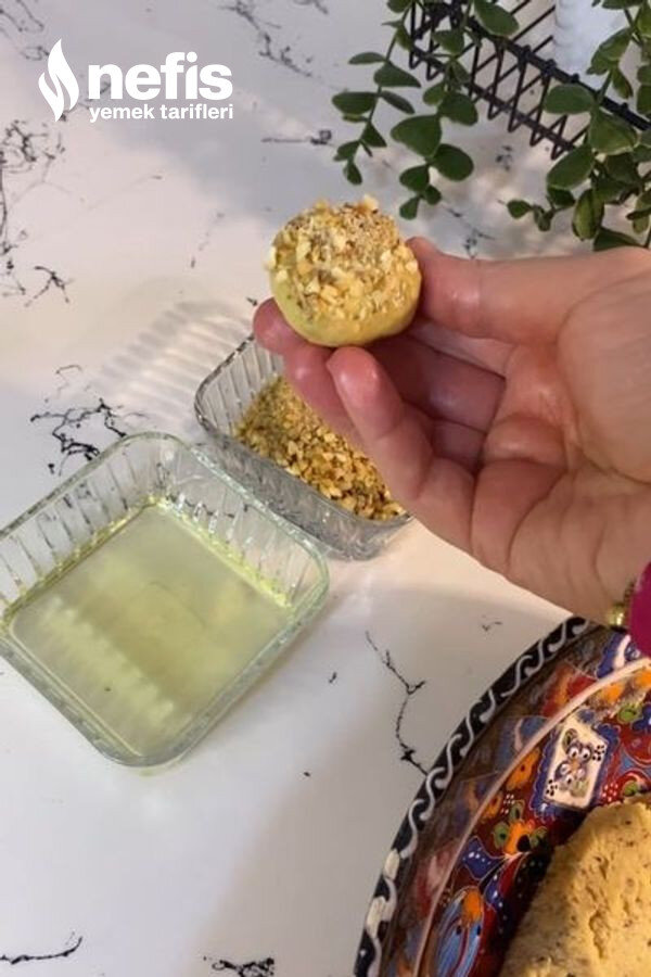 - Yoğurduğumuz hamurdan ceviz büyüklüğünde kesimler kopartıp yuvarlayalım.