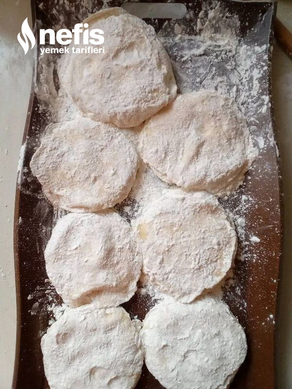 - 5 li hamurlarımızı tepsi boyutunda açalım tepsiye 4 açtığımızı koyalım.