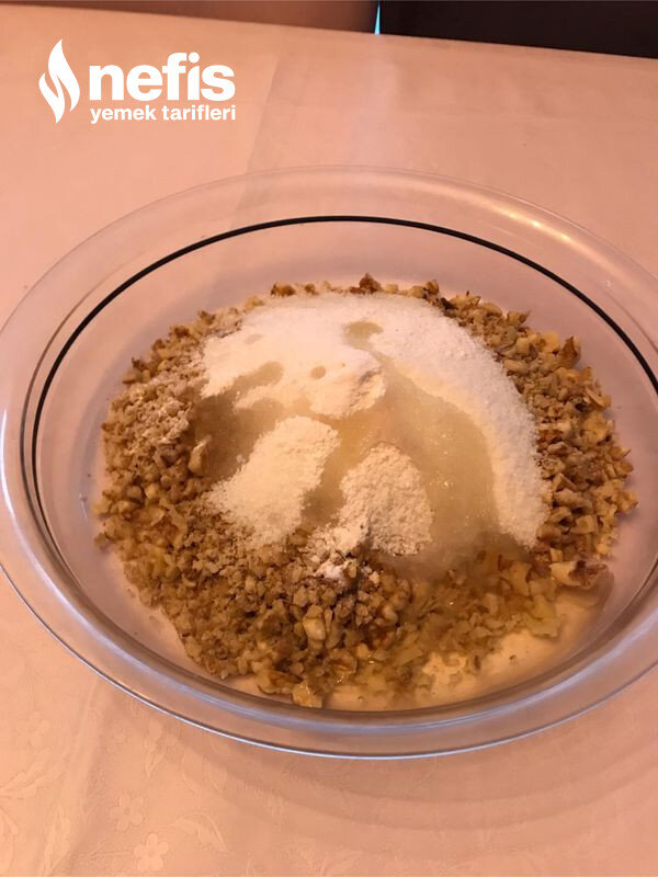 - Bu ortada içi için, cevizler toz halinde olmayacak halde çekilir.