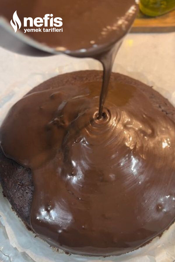 - Kek ılındıktan sonra ılık olan çikolata sosu ekleyip 1 saat dinlendirelim.