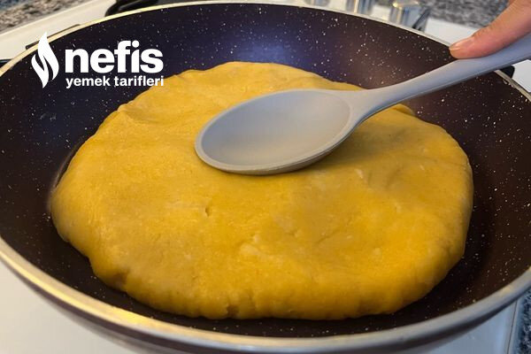 - Diğer materyalleri baharatları sırayla ekleyerek hamur gereçlerini tavada yeterlice pürüzsüz kıvam alıp katılaşana kadar pişirelim, soğumaya bırakalım.
