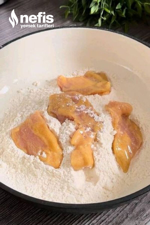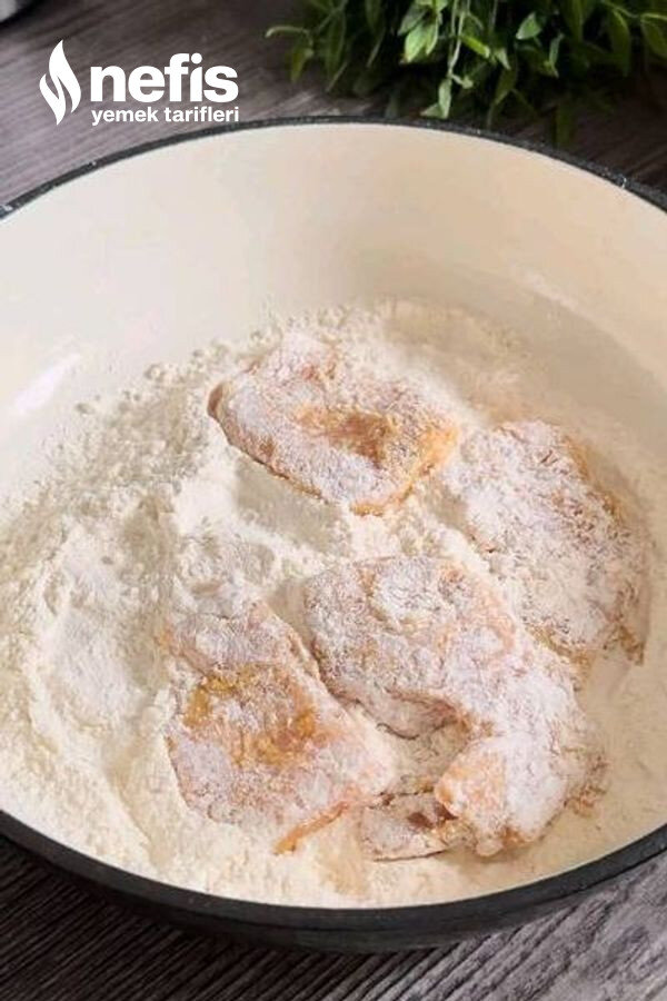 - Tavukları sosa batırıp akabinde una bulayalım.