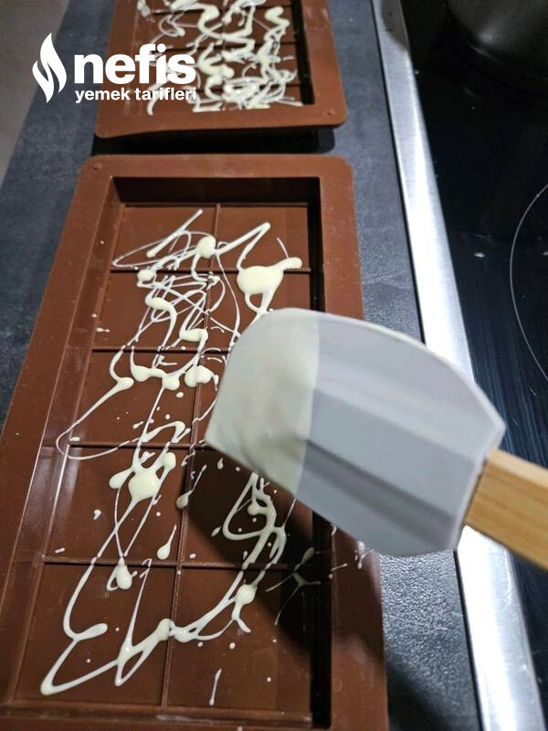 - Beyaz çikolatayı öbür bir tencerede eritin ve bir kaşık yardımıyla çikolata kalıbına sıçratın yahut yavaşça gezdirin.