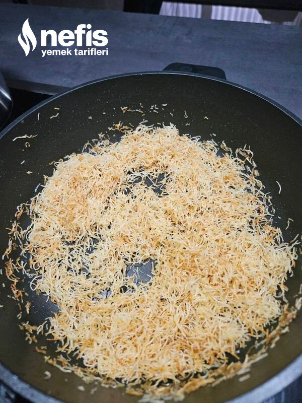 - Aynı vakitte kadayıfları tereyağında orta ateşte hafif kahverengi olana kadar kızartın (sabırlı olun!).