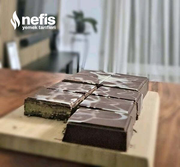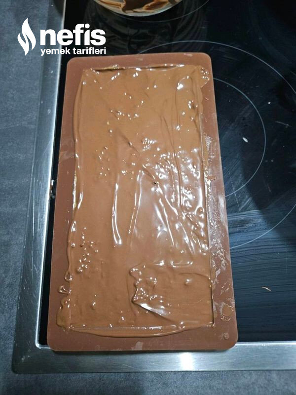 - Son olarak kalan çikolatayı ince bir biçimde üzerine yayın ve düzgünce soğumasını bekleyin.