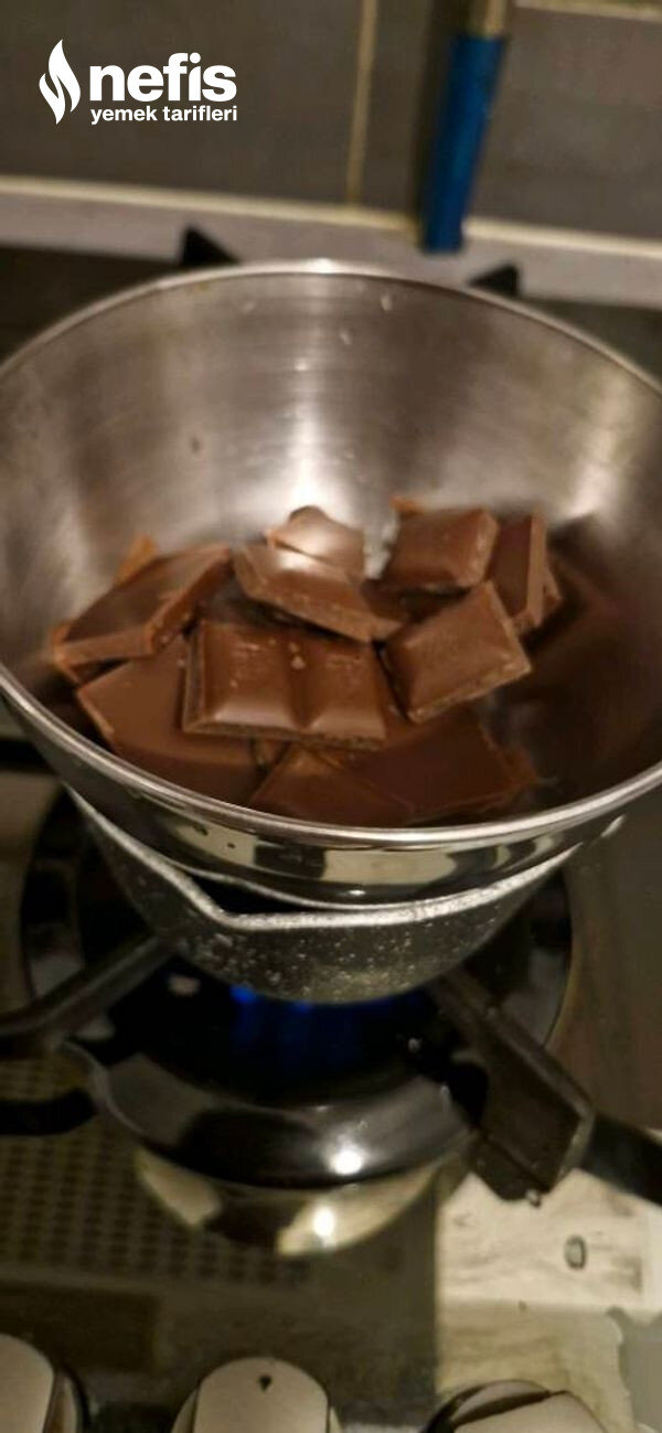 - Daha sonra tekrar 1 kaşık erimiş çikolata koyalım ve en az 30 dakika buzdolabında bekletelim.