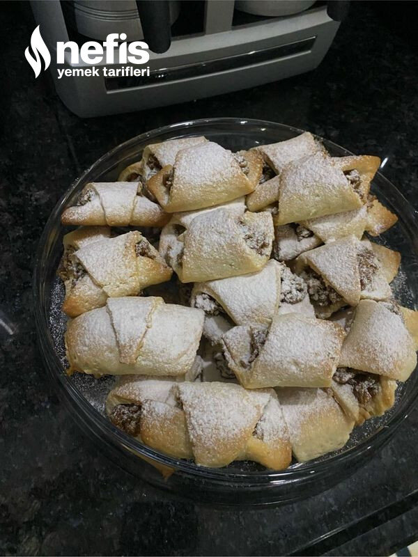 - Kurabiyelerimizin geniş kısmından başlayarak sigara böreği sarar üzere rulo formunda saralım.