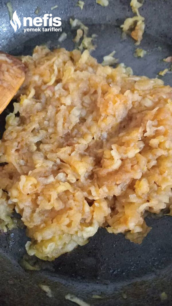 - Elmaları soyup rendeleyin ve bir tavaya alın.