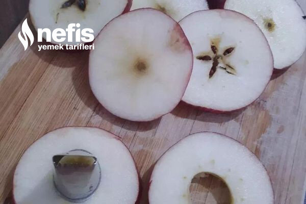 - Elmaları soymadan yıkayıp temizleyelim. Çok kalın değil çok incede değil dilimleyelim.