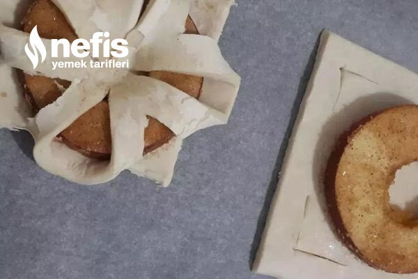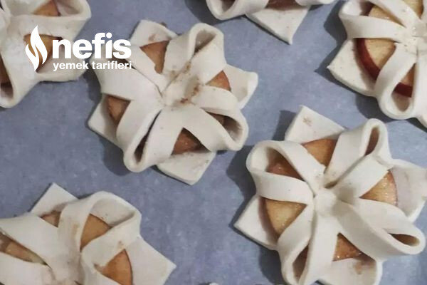 - Milföylerin üzerine bulanan elmaları koyup köşelerinden kapatalım.