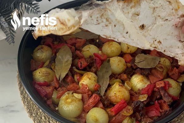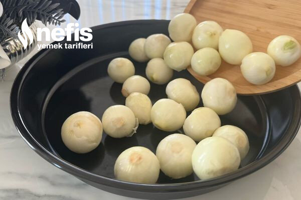 - Soğanlarımızı soyalım ve tepsiye koyalım.