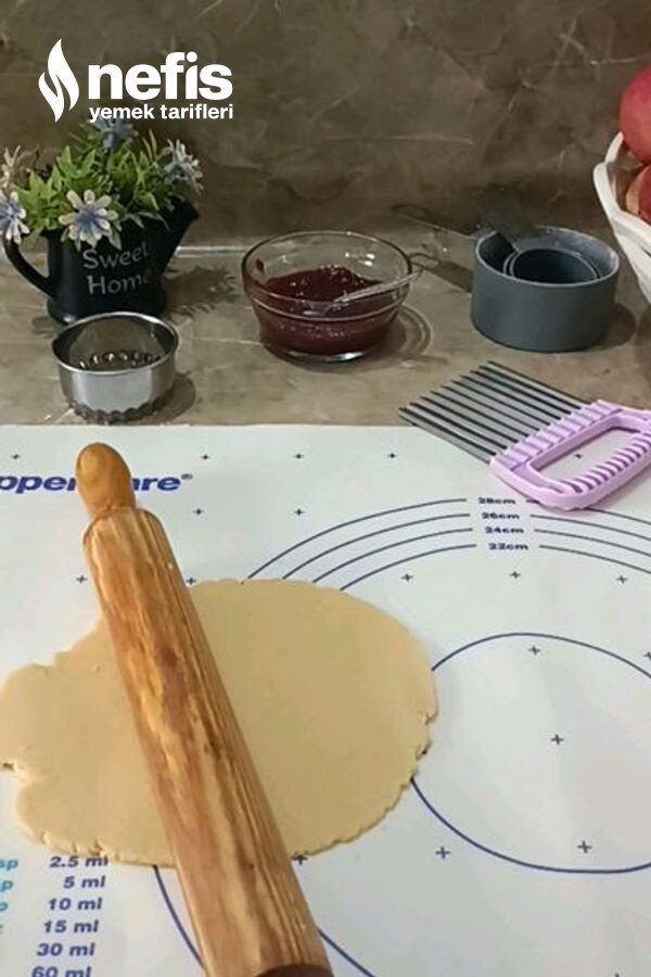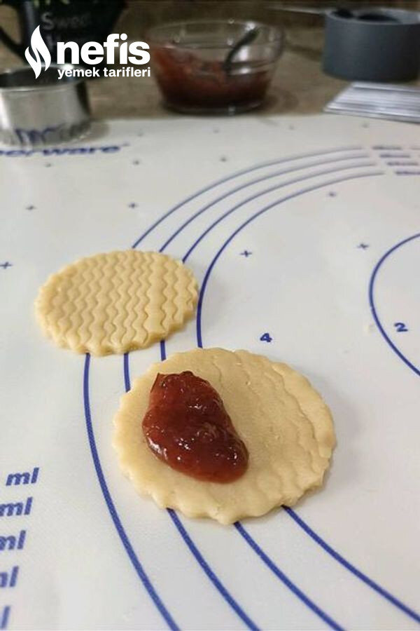 - Ters çevirip ortasına bir çay kaşığı marmelat koyup d halinde kapatalım.