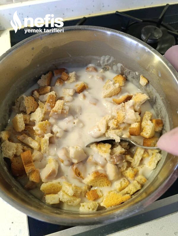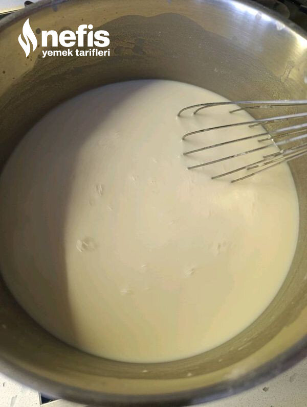 - 1 litre sütün içine un ve şekeri koyarak kaynamaya bırakalım.