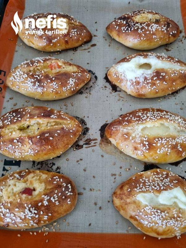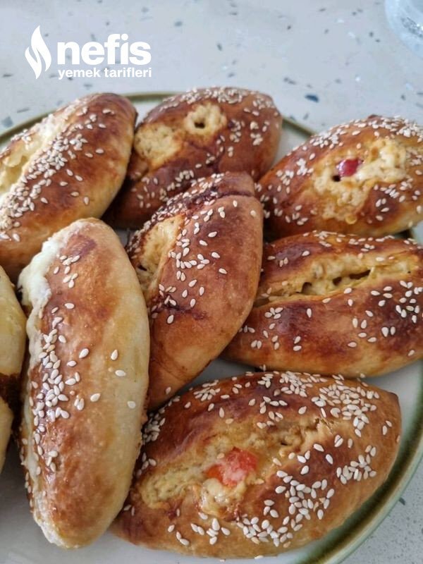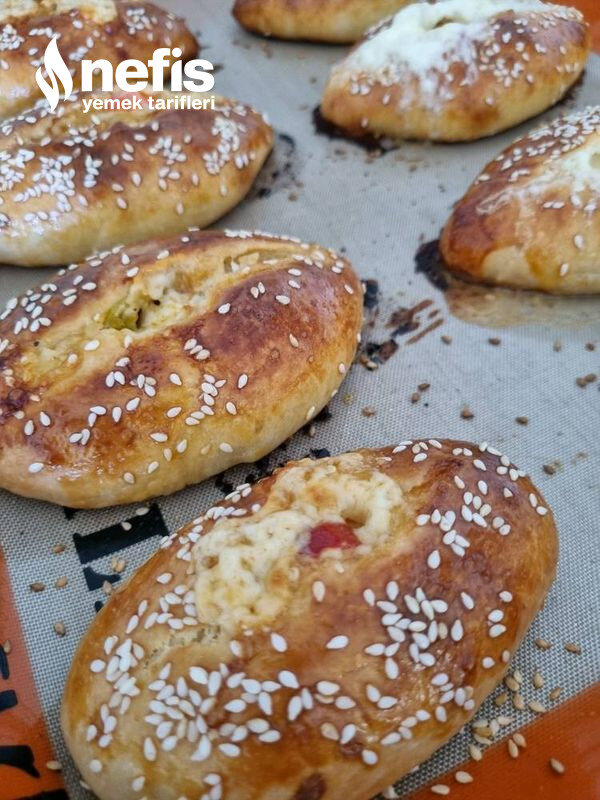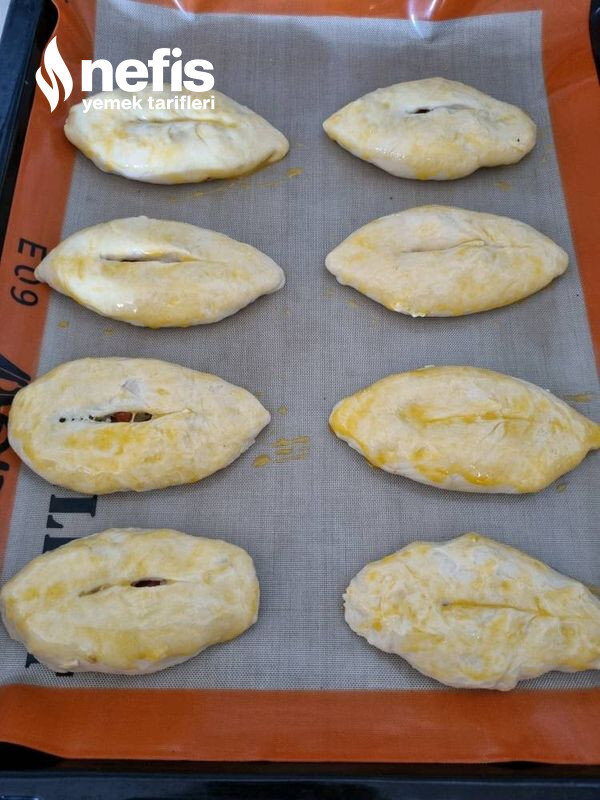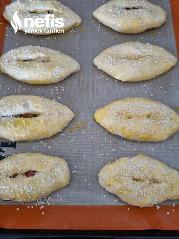 - Tepsiye dizip beş dk dinlendirelim ve ortasına bir çizik açalım ve yumurta sürüp susam serpelim.