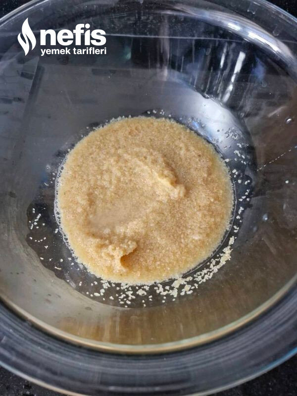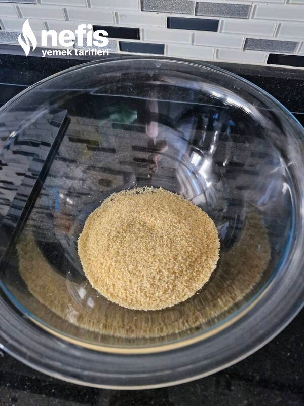 - Öncelikle bulgurumuzu sıcak su ile ıslatıyoruz, 15 dakika bekletiyoruz.