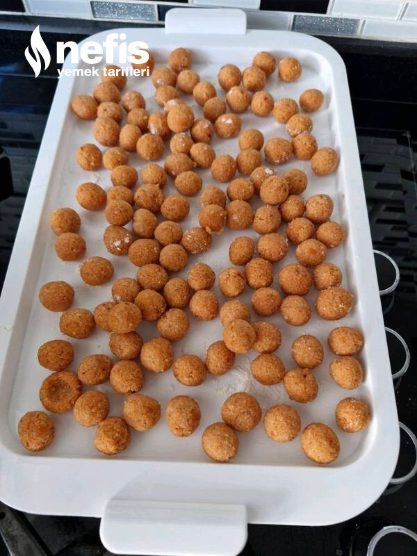 - Daha sonra yuvarlak yapıp minik minik tepsiye koyuyoruz .