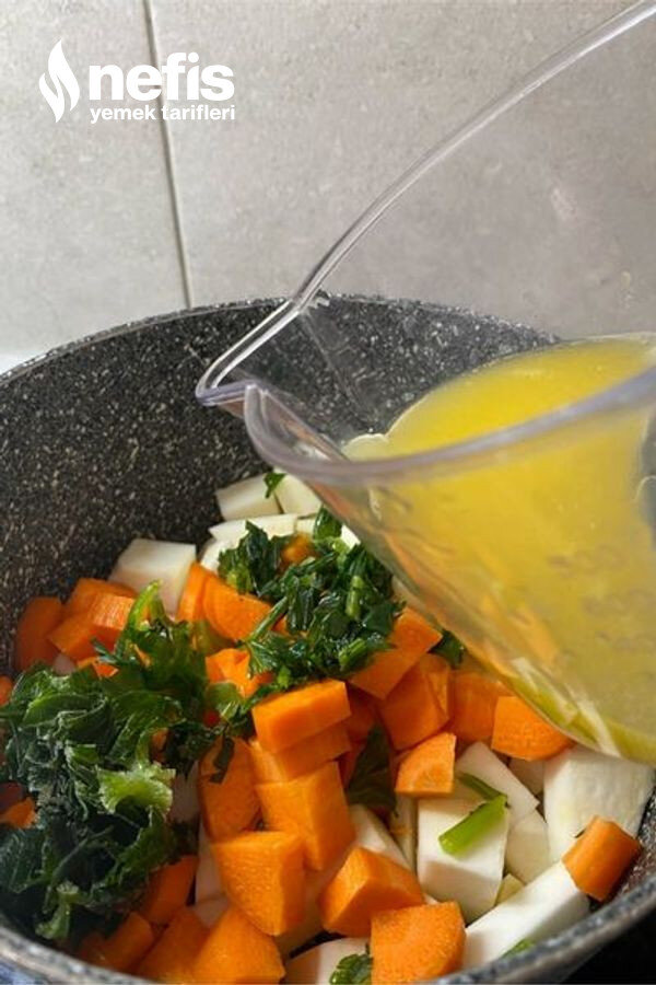 - Önce portakalın suyunu sıkıyoruz, süratlice kerevizi soyup küp küp doğruyoruz, tencereye alıyoruz.