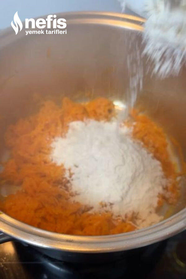 - Üzerine unu ekleyip kokusu çıkana kadar kavurun.