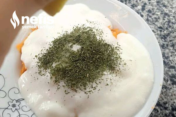 - Üzerine havuca nazaran yoğurt koyun.