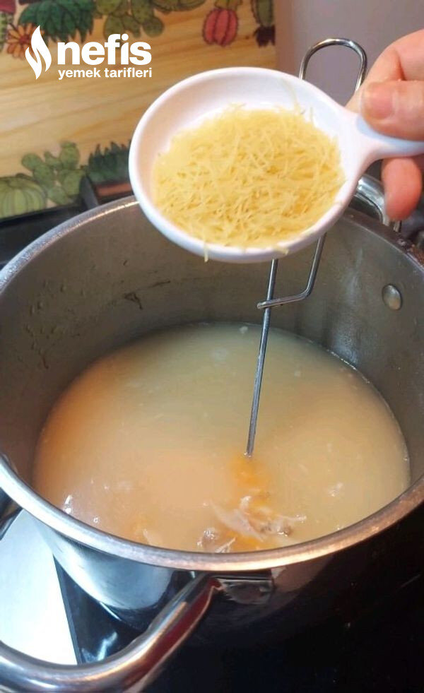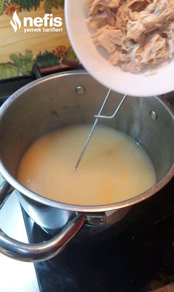 - Tavuk etini didip çorbamıza ek ediyoruz.