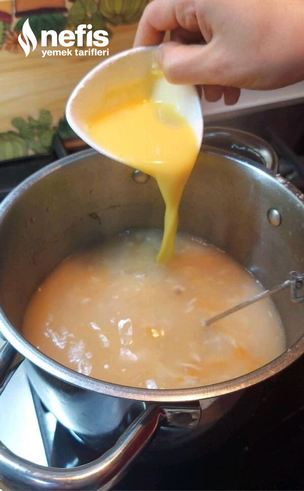 - Çorbayı karıştırarak yavaş yavaş terbiyesini ekliyoruz.