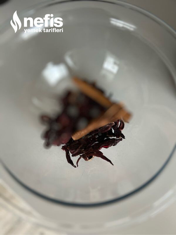 - Bir çay bardağı hibiskusu da ekliyoruz.
