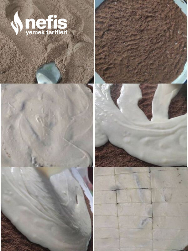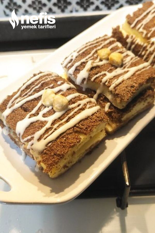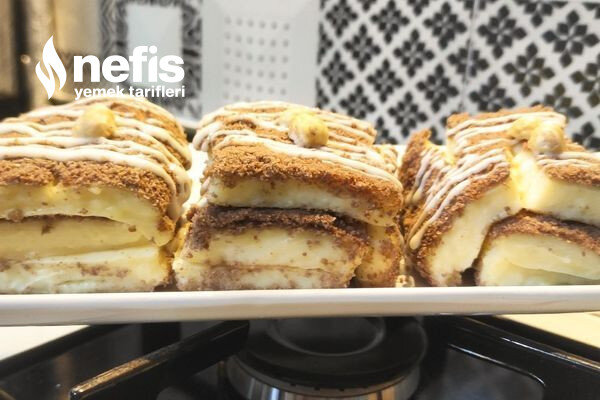 - Hemen sonra bisküvi tozunun her yerini kaplayacak formda üzerine dökelim .