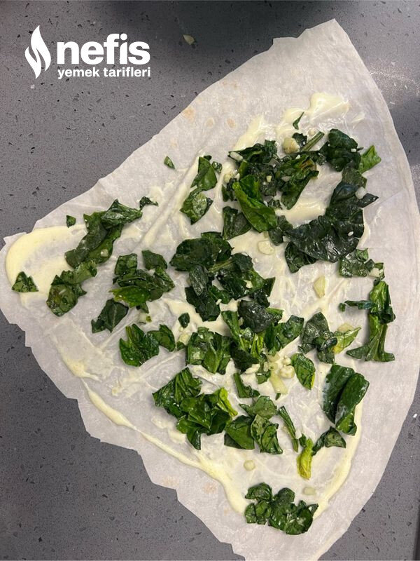 - Üzerine 2 yemek kaşığı sos gezdirilir ve ıspanaklar ek edilip güzelce yayılır.