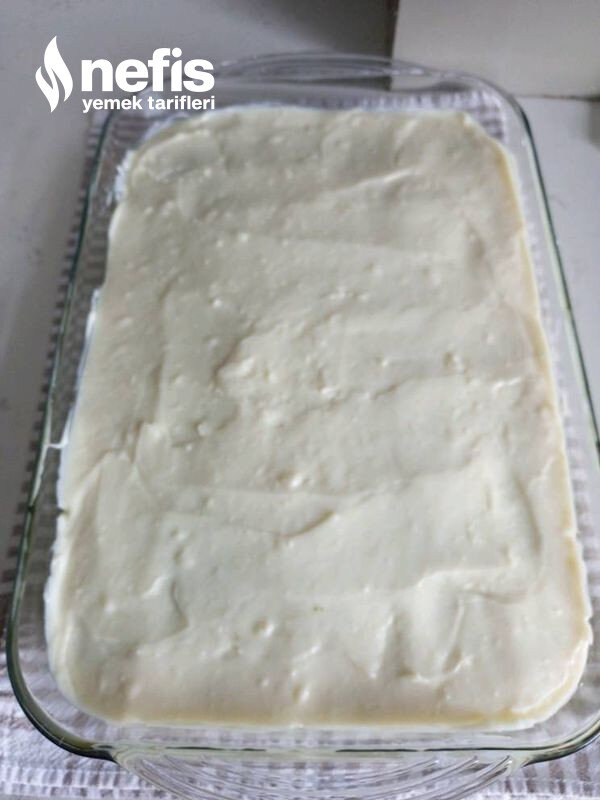 - Soğuyan keki bir su bardağı süt ile ıslatalım ,üzerine hazırladığımız kremayı yayalım.