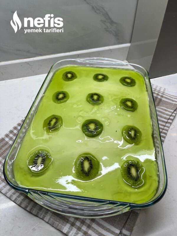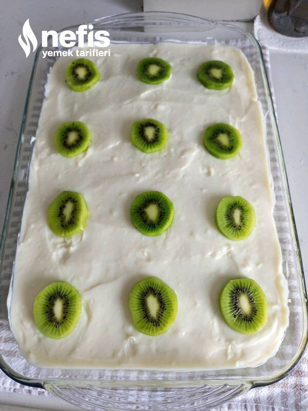 - Dilimlediğimiz kivileri kekin üzerine aşikâr aralıklarla dizelim.