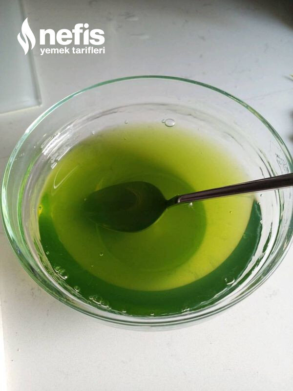 - Jel için 2,5 su bardağı kaynamış suyu bir kabın içerisine alalım üzerine jeli döküp eriyinceye kadar karıştıralım.