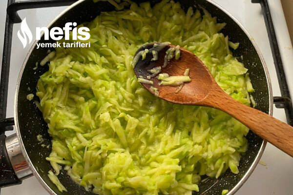 - Yağımızın üstüne rendelenmiş kabaklarımızı atalım. Ve suyunu çekene kadar pişirelim. Piştiği sırada üstüne tuz atalım.