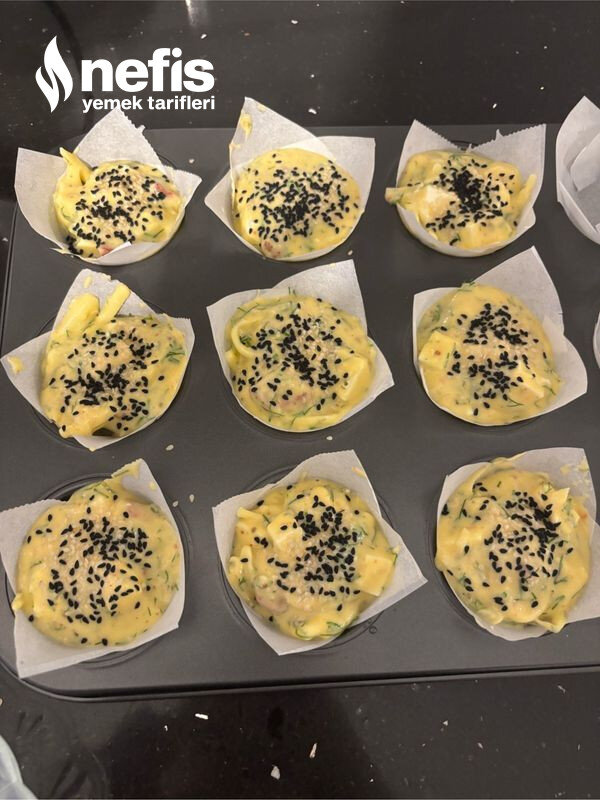 - Merhabalar. Yumurta yağ uygunca karıştırılır. Sonra sırasıyla tüm gereçler eklenir. Homojen kıvam alana kadar karıştırılır. Muffin kaplarına eşit formda dağıtılır. Üstlerine çörek otu, susam dökülür.