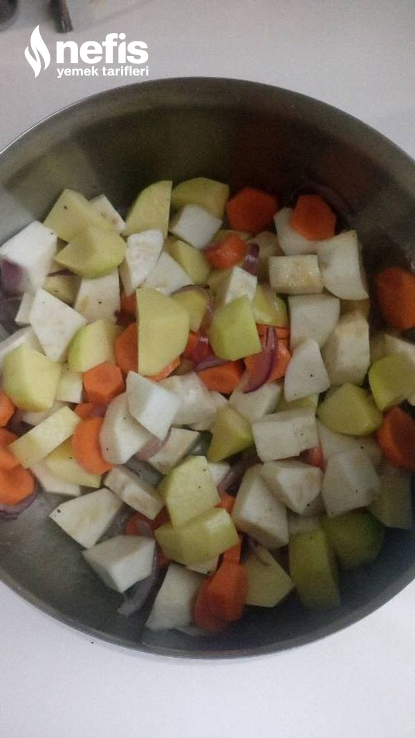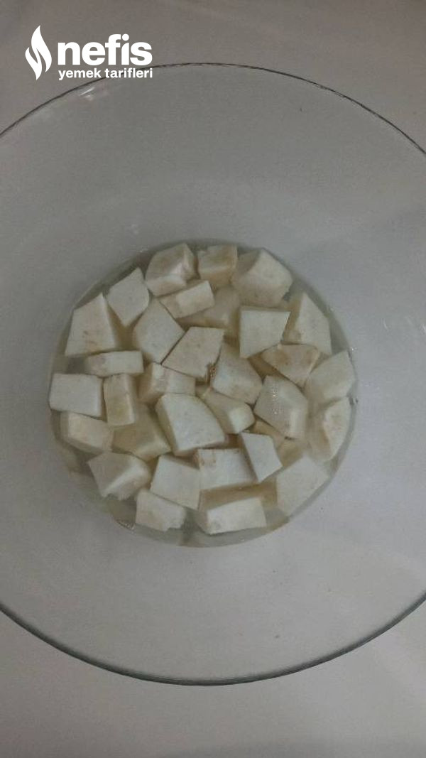 - Kerevizleri soyup küp küp doğrayıp 15 dk limonlu suda bekletiyoruz.