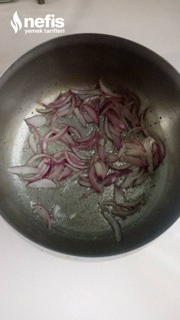 - Soğanı istediğimiz üzere doğrayıp üzerine şeker, tuz ve karabiberi alıp hafif karamelize olana kadar kavuruyoruz.