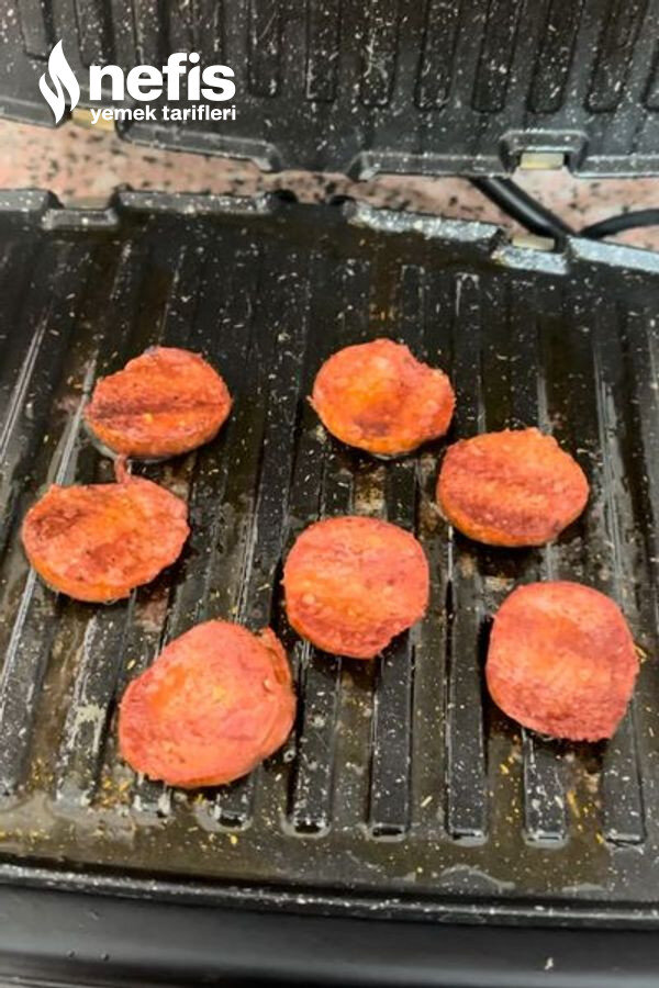 - İlk olarak sucuklarımızı dilimleyelim ve tost makinesinde gerili önlü yavaşça pişirelim.