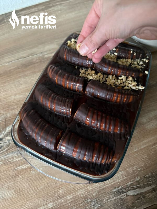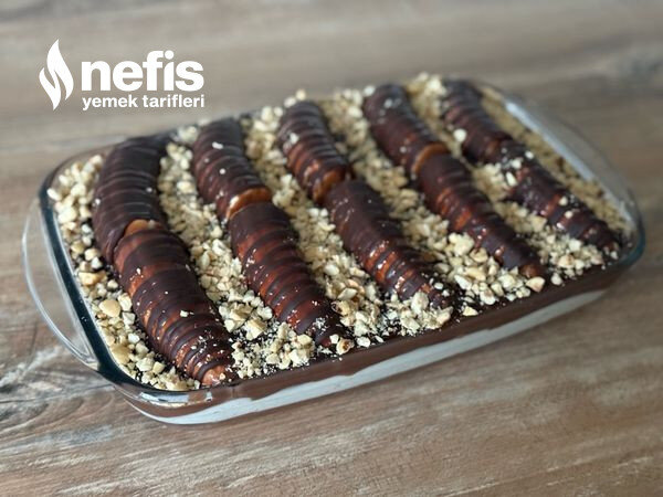 - Kırılmış fındık ile süsleyin ve pastanızı 2 saat buzdolabında soğutun. Afiyet olsun!
