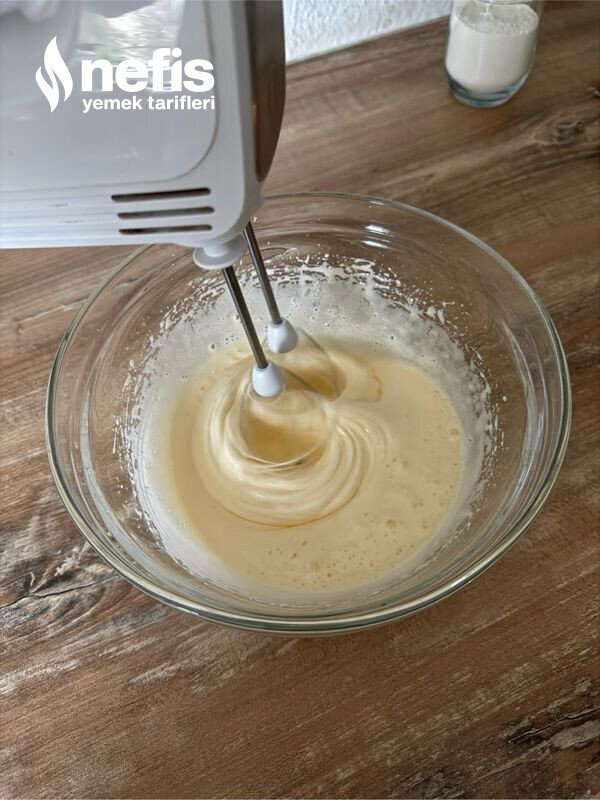- Fırını evvelden 180 derece alt/üst ısıda ısıtın. Fırın kabını (dikdörtgen borcam) sıvı yağ ile yağlayın. Yumurtaları ve şekeri köpürene kadar çırpın.