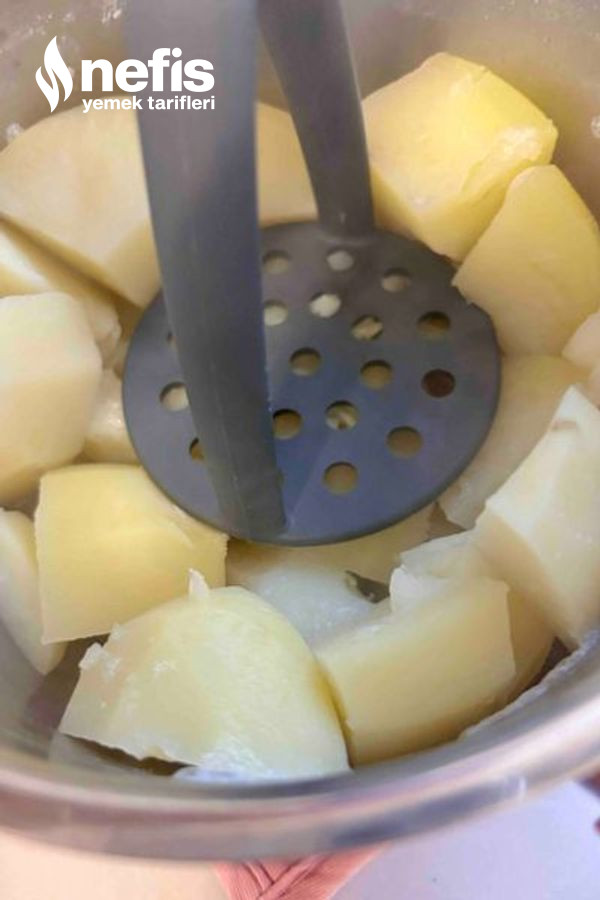 10. Tamamen yumuşayana kadar pişirin, pişince ocaktan alıp tenceredeki suyu dökün patatesleri ezici ile güzelce ezin iri kesim kalmasın.