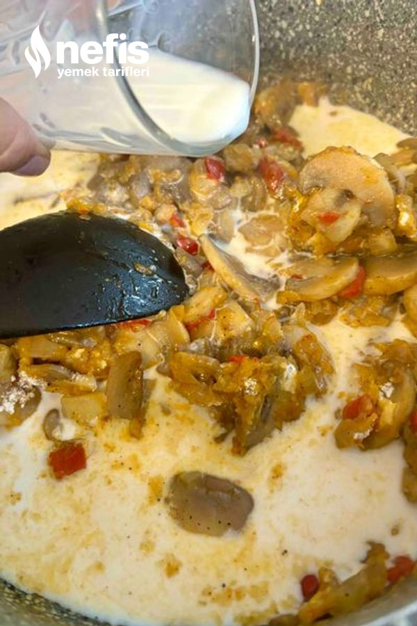 8. Suyunun çoğunluğunu çekince baharatları ve tuzu ekleyelim, ocağın ateşi çok yüksek olmasın, bir yemek kaşığı unu ekleyip bir kaç çeşit karıştıralım ve sütü ekleyelim, kaynayana kadar daima karıştıralım kaynadıktan sonra kıvam ağırlaşınca ocağın altını kapatalım.