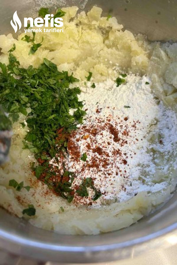 11. Nişastayı, ince ince doğradığınız maydanozları, pul biber ve zerdaçal ve tuzu ekleyip büsbütün karıştırın.
