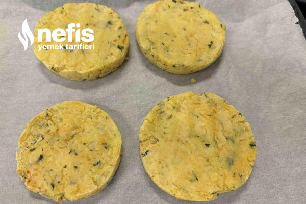 12. Tepsiye yağlı kağıt serelim ve varsa yuvarlak kasnak kalıp yoksa istediğiniz hal kalıp yahut elinizle de şekillendirebilirsiniz, kasnağın içine patates püresini koyalım püre bitene kadar yahut kişi ve köfte sayınıza nazaran püreleri bölebilirsiniz.